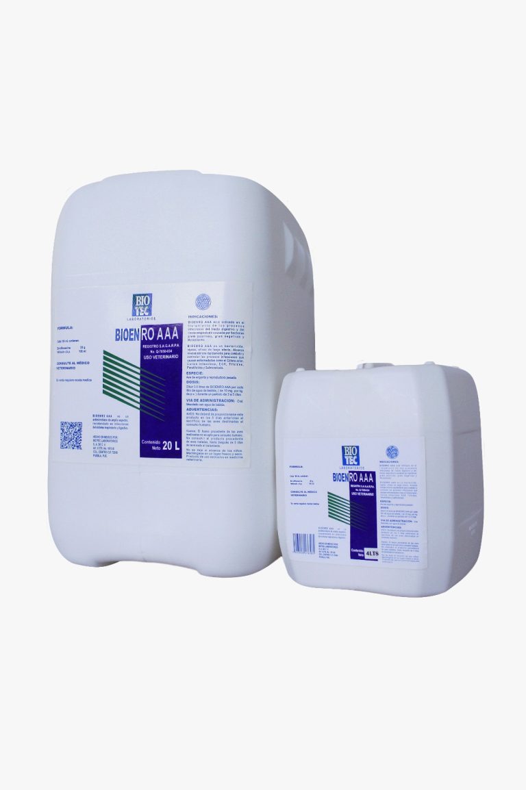 BIO-ENRO AAA es un antibacteriano que por su inmediata acción, gran potencia, amplio espectro, así como, su mecanismo de acción le dan ventajas importantes, tanto neurológicas como antibacterianas en los diferentes tratamientos infecciosos, permitiéndole también una rápida incorporación al organismo, sobre todo en tejidos y fluidos corporales.